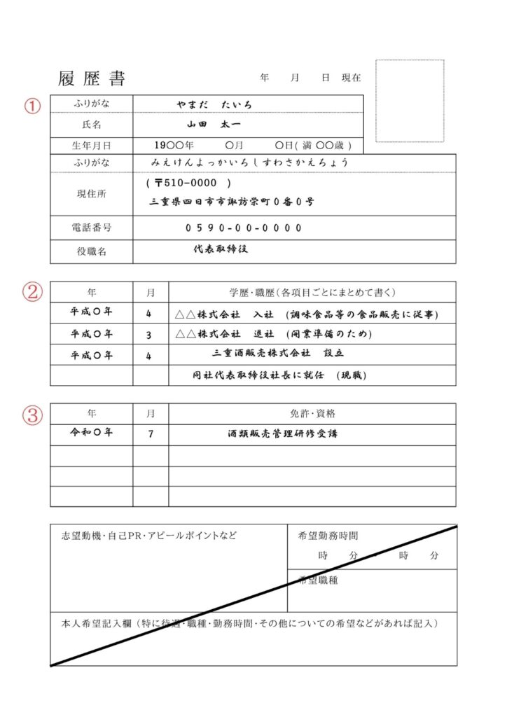 三重県|一般酒類小売業免許「履歴書」記入例と作成ポイント