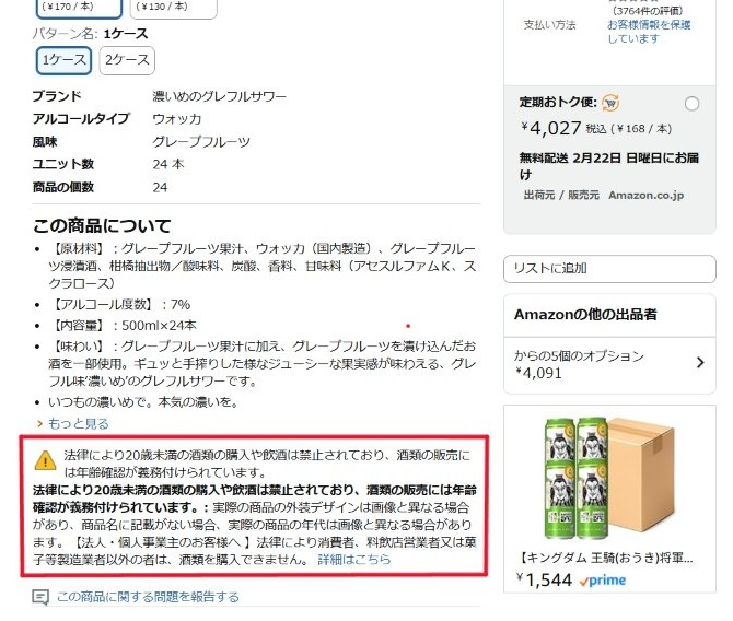 下記の画像は、Amazonで酒類を購入しようとする際に表示されるテンプレート例です。