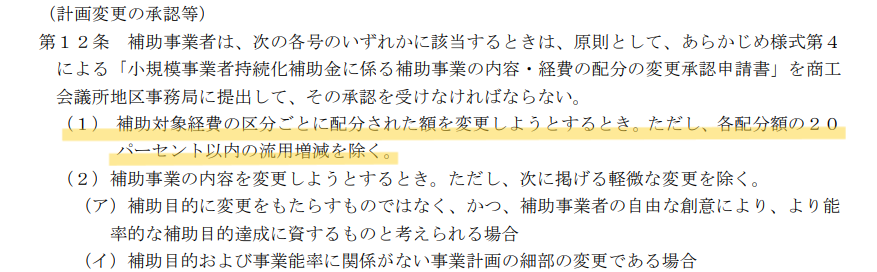 各区分ごとの配分額が20%以上増減する場合には、計画変更の承認が必要となります。