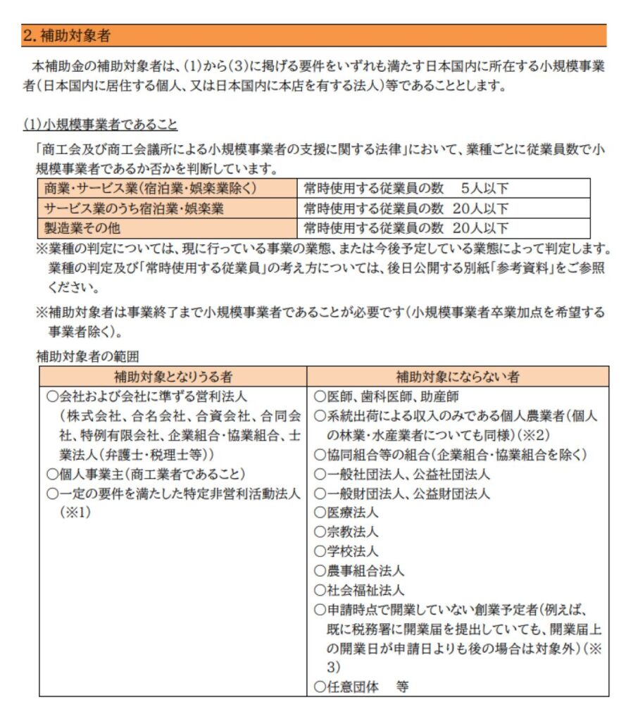 小規模事業者持続化補助金を申請できる事業者は?